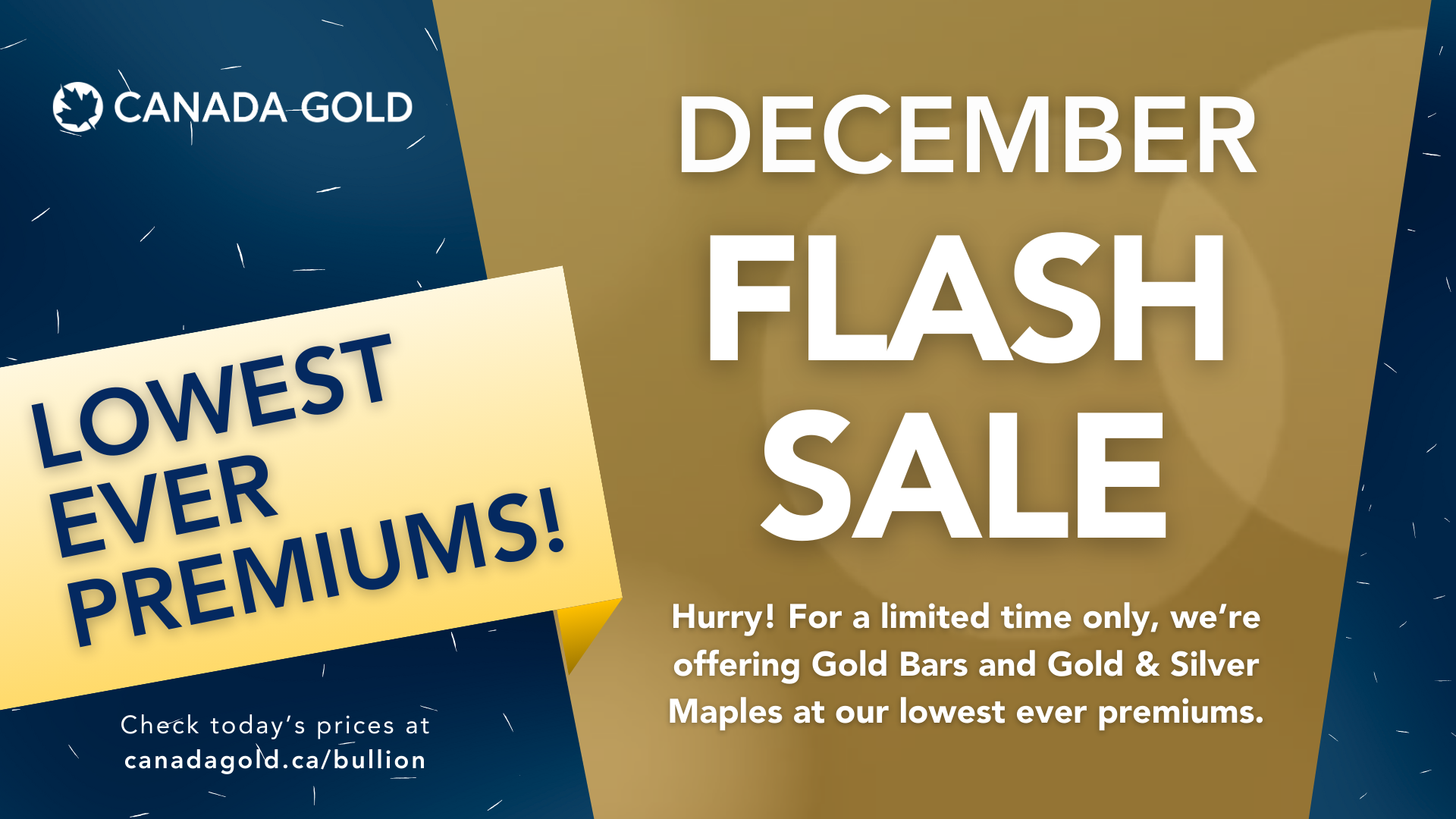 Alongside our holiday giveaway, Canada Gold is also offering a December Flash Sale on select bullion products. For a limited time, Gold Bars and Gold & Silver Maples are available at some of our lowest ever premiums.