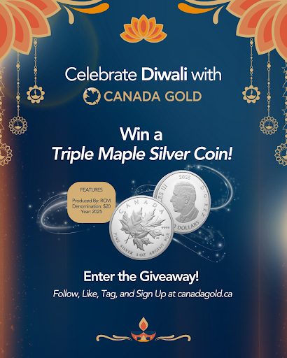 Our Diwali Giveaway featured a stunning prize: the 2025 $20 Triple Maple Pure Silver Coin, beautifully crafted by the Royal Canadian Mint and valued at $119.95.